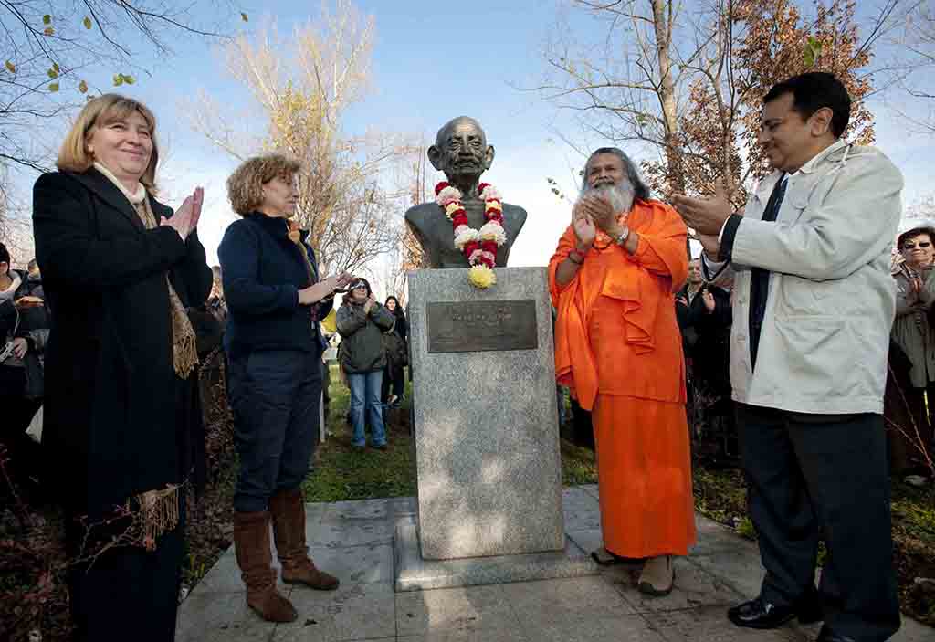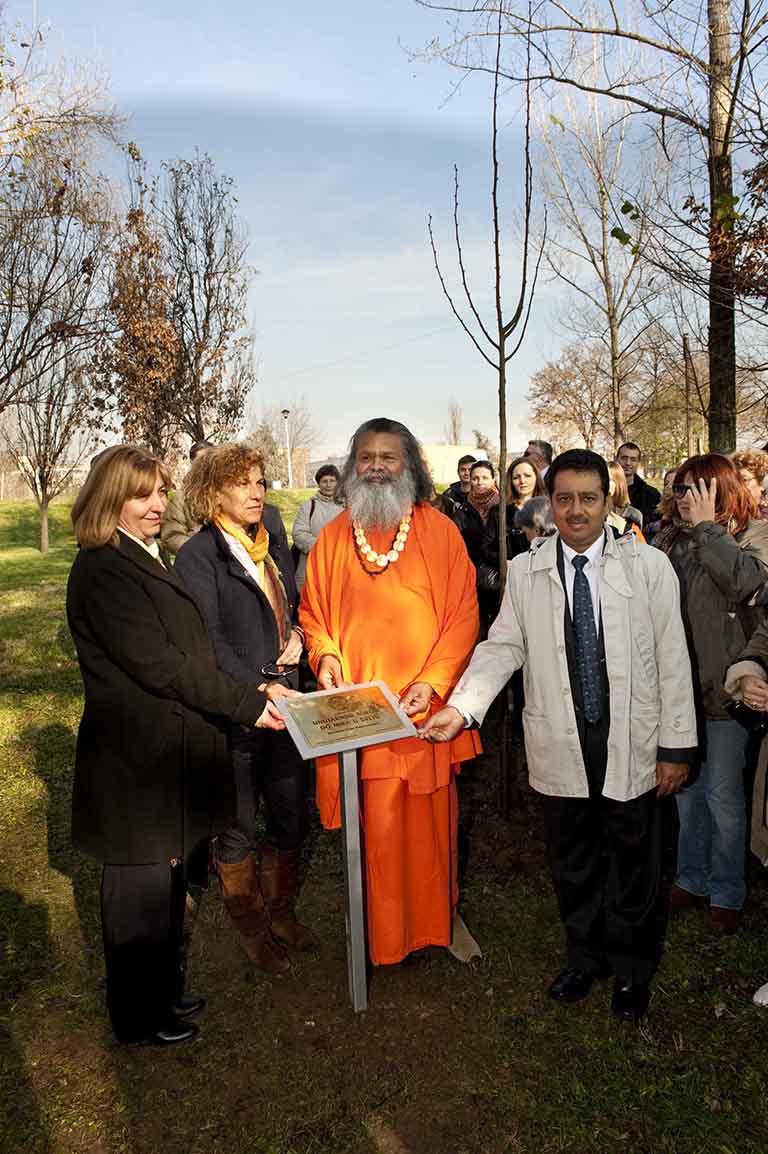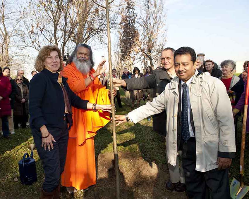 On Novemeber 25, 2010 His Holiness Mahamandaleshwar Paramhans Swami Maheshwarananda, together with the representative from the Indian Embassy Mr Naveen Saxena and Ms Danica Becanovic, Deputy of the Ministry of Environment planted a World Peace Tree on Friday, 26th November, in a beautiful park near river Sava in Belgrade, capital of Serbia, by the Statue of Mahatma Gandhiji.Paramhans Swami Maheswarananda emphasized that the peace tree will not be just a symbol of peace and Mahatma Gandhiji's birthday but also a powerful reminder of Non–Violence Day as proclaimed by the United Nations.