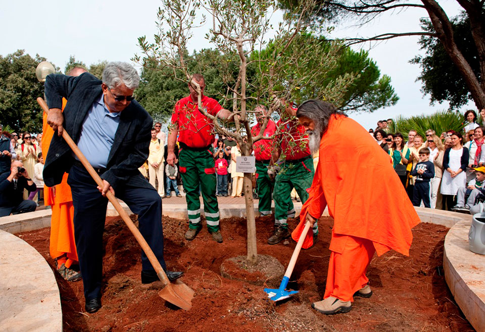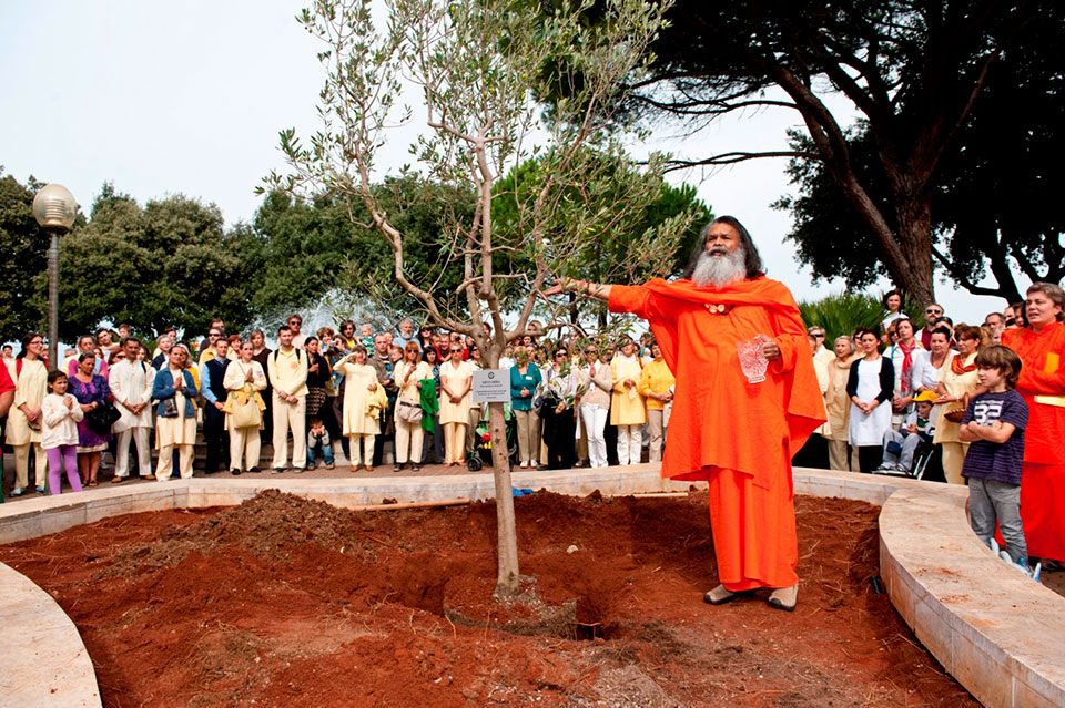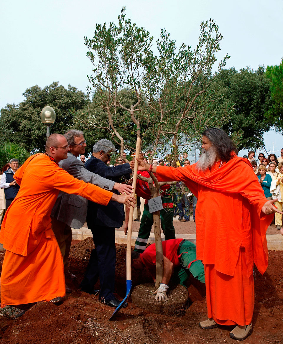 After the peace dialogues, HH Swamiji, together with the Vice-Mayor of the city of Umag, Mr. Mauro Jurman and other distinguished guests, planted an olive tree as a living symbol of peace and non-violence in the centre of Umag.