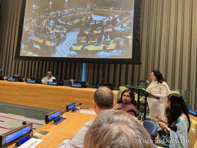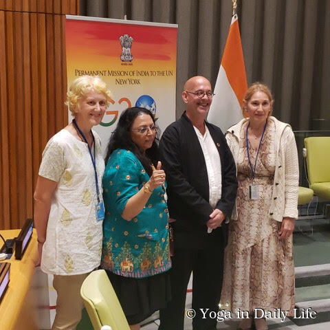Representatives of the Sri Swami Madhavananda World Peace Council (SSMWPC) attended the event, together with colleagues from the International Day of Yoga Committee.